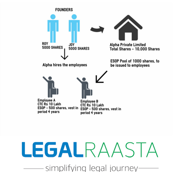 Alpha Private Limited is a recent startup and is looking for talented employees. The employees demand a remuneration of Rs. 15 lakh per annum as they are experts in their area. The company, however, can only afford to pay Rs. 10 lakh per annum. So in a pursuit to not lose two experts, the company allocates ESOPs to both employees with a vesting period of 4 years and hires them with 10 LPA salary.