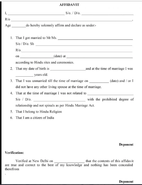 Format of an affidavit for Marriage Certificate by the Bride & Groom