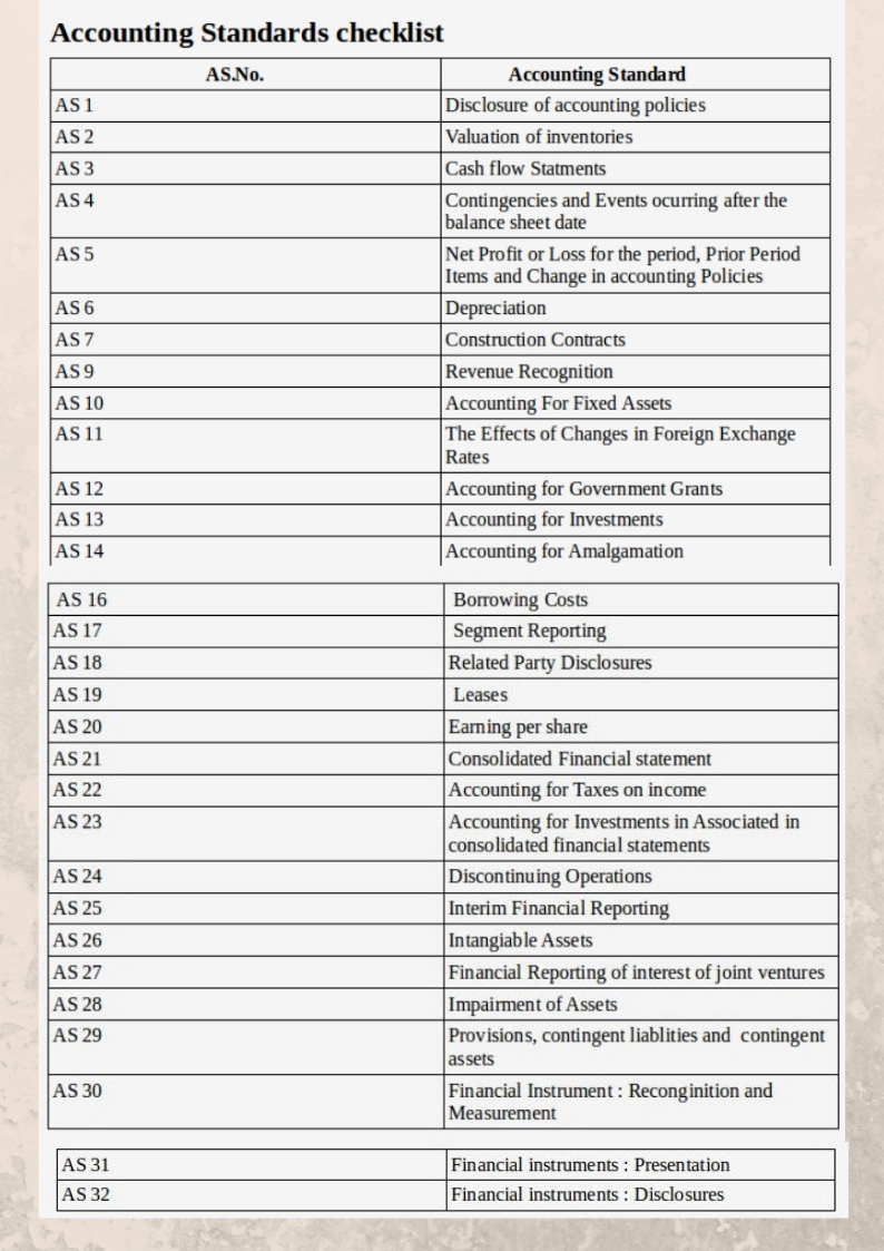 This a checklist for accounting standards is compulsory and one can go through all the AS No for and the accounting standards like cash flow statements, financial instruments, depreciation and many more gaining a high financial position in every financial year.
