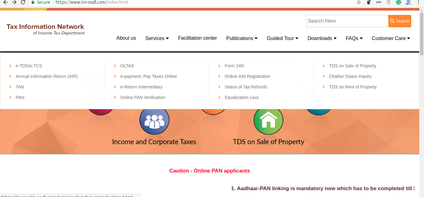 Go to the official website by using the link: www.tin-nsdl.com/index.html