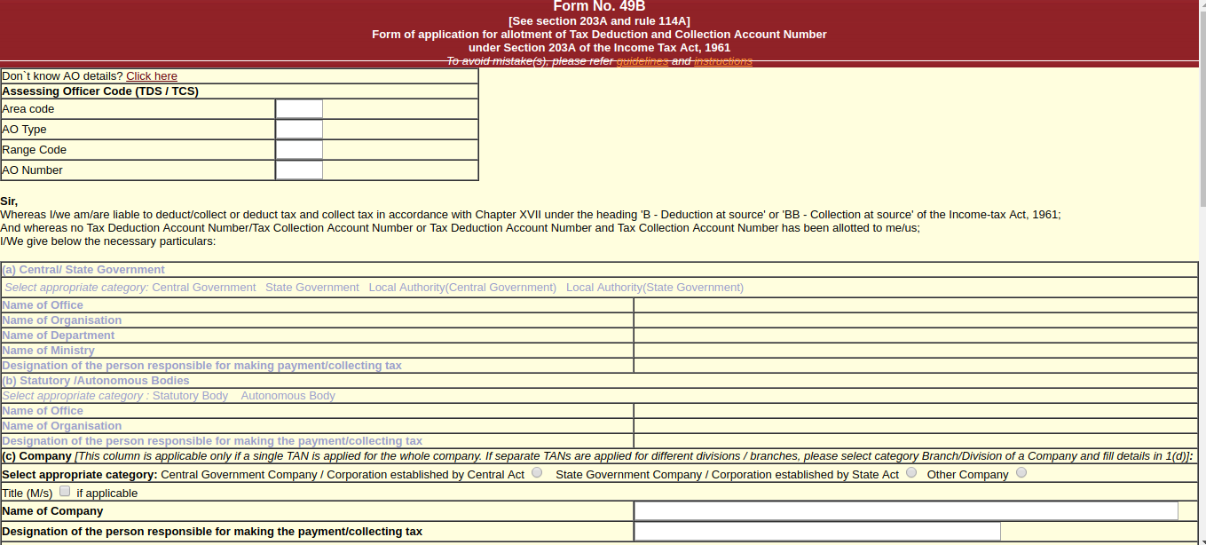 Online procedure for TAN Application