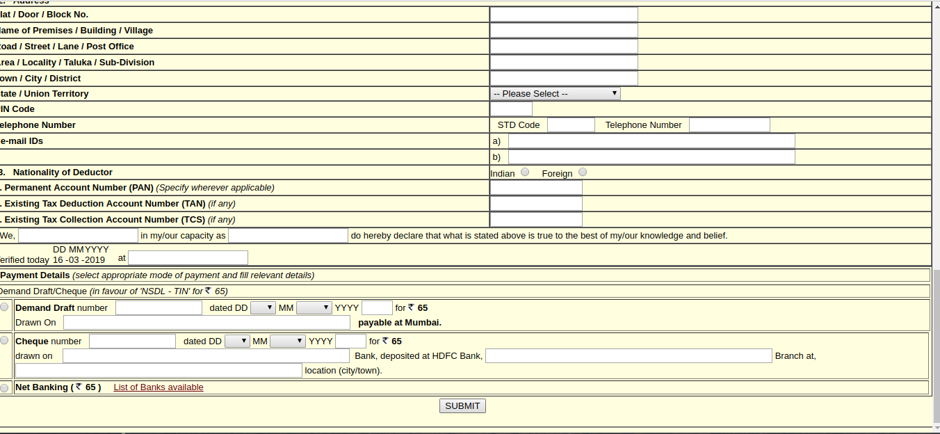 - Demand draft/Cheque must be in favor of NSDL-TIN.