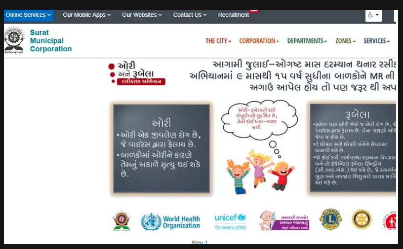STEP 1. Log on to the website: https://www.suratmunicipal.gov.in/of Gujarat Government.