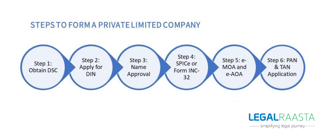 Now getting down to the procedure for registration of Private Limited Company, It is a very simple 6-step procedure. Here’s an illustration to clear it up for you.